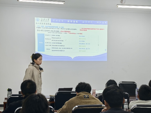 为打破信息壁垒,充分发挥青年先锋榜样力量,搭建朋辈经验分享交流平台,11月9日晚,“先锋说”沙龙之保研经验分享专场第五期在学院417会议室举行。学院党员先锋队邀请2022级本科生田婷玉(推免至西北工业大学)、王晴晴(推免至湖南大学)、刘忠禄(推免至西南交通大学)三位同学作为受邀嘉宾参与本次活动,就保研的相关问题与在场的同学分享经验、交流心得。