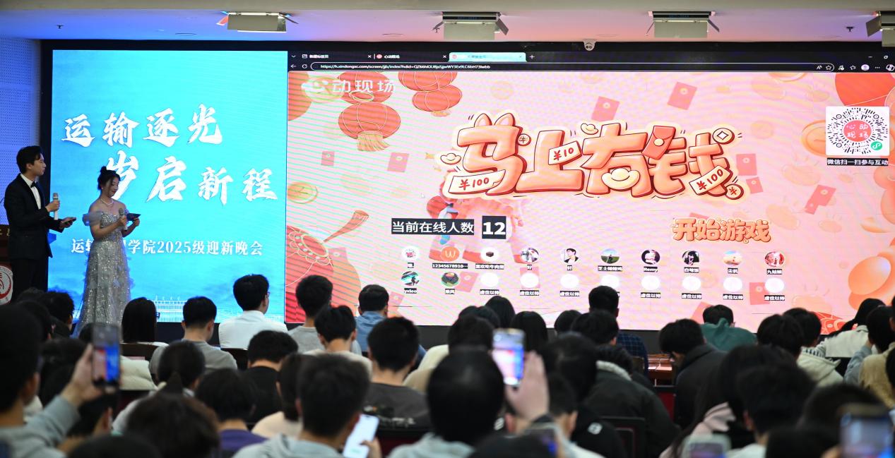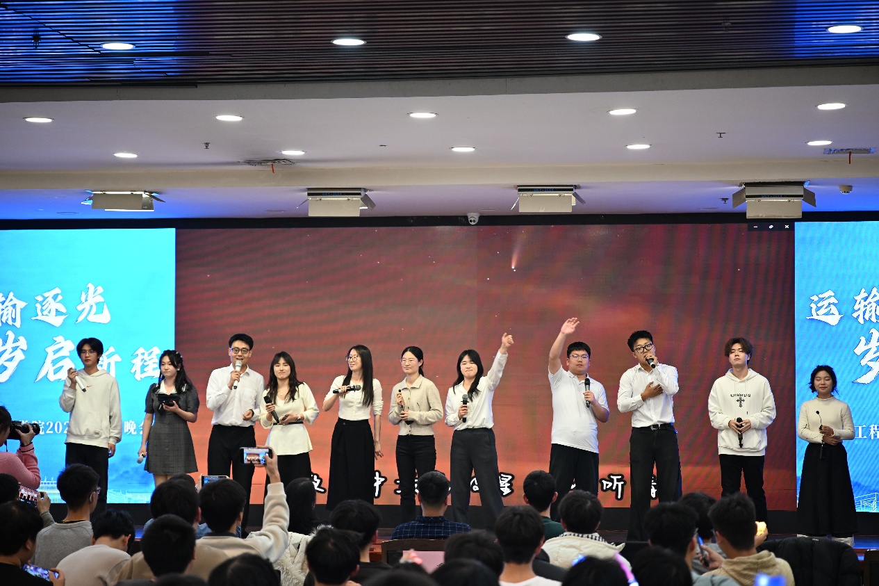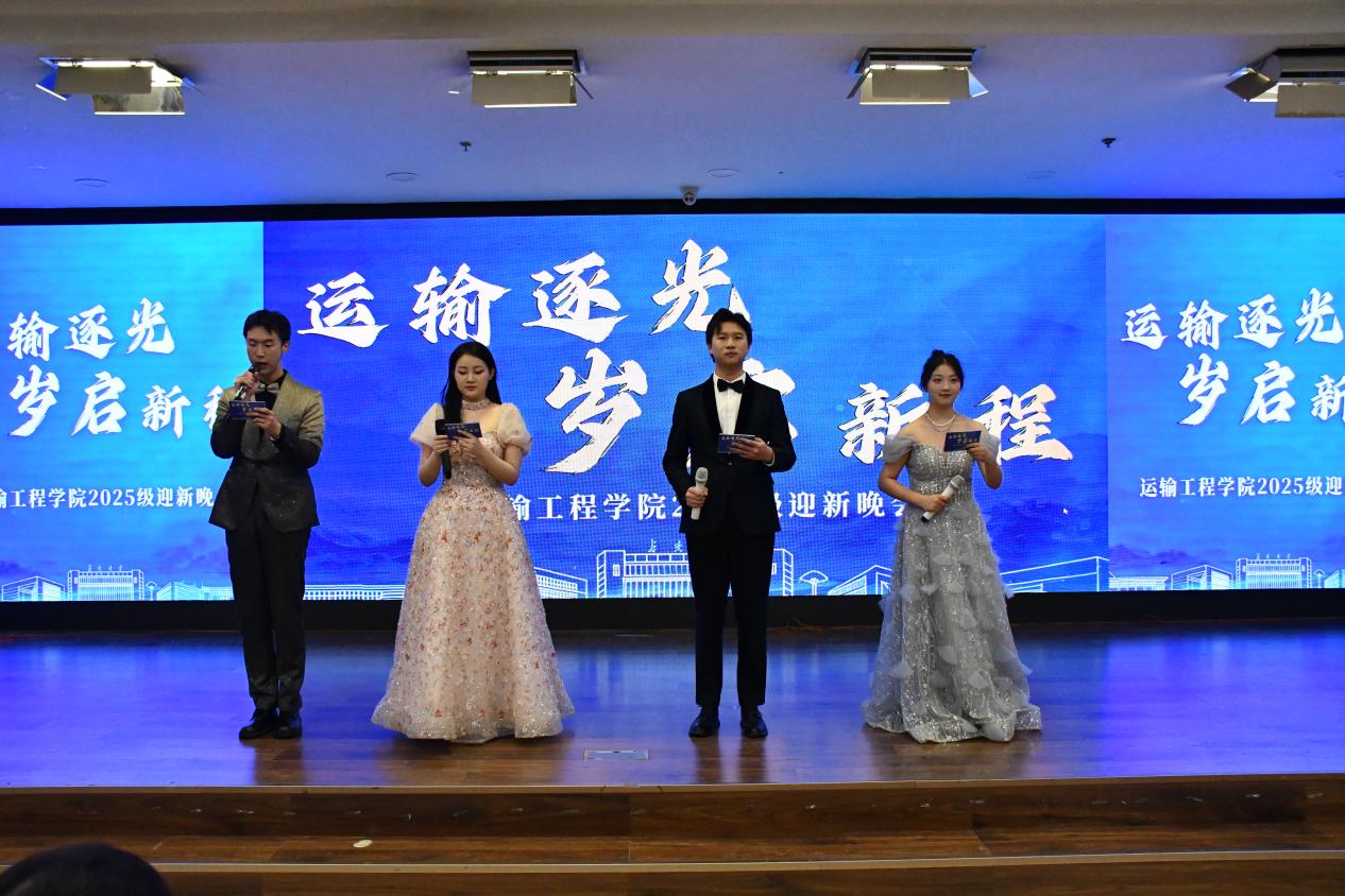 12月30日晚,运输工程学院2025年“运输逐光·岁启新程”迎新晚会在长安大学北校区文化艺术中心三楼多功能厅举行。院党委副书记李婷、2025级新生班主任代表、全体辅导员和2025级全体本科生参加晚会。